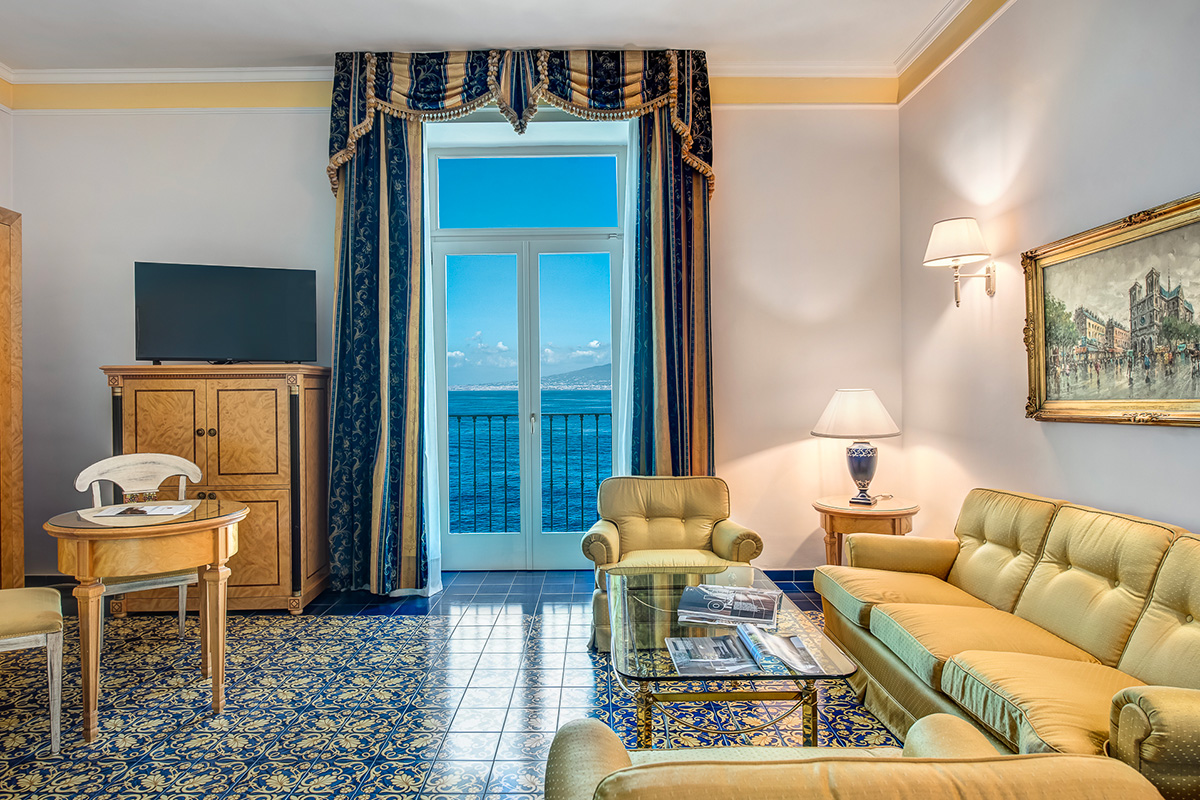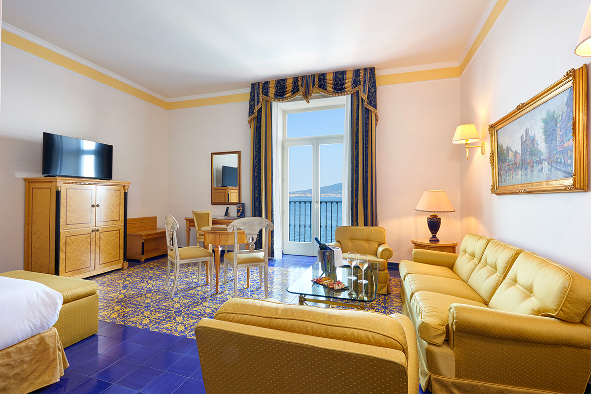 Junior Suite, Junior Suite con vista mare, TV satellitare, cassaforte, aria condizionata regolabile individualmente da giugno a settembre, telefono diretto, alcune con vasca idromassaggio.